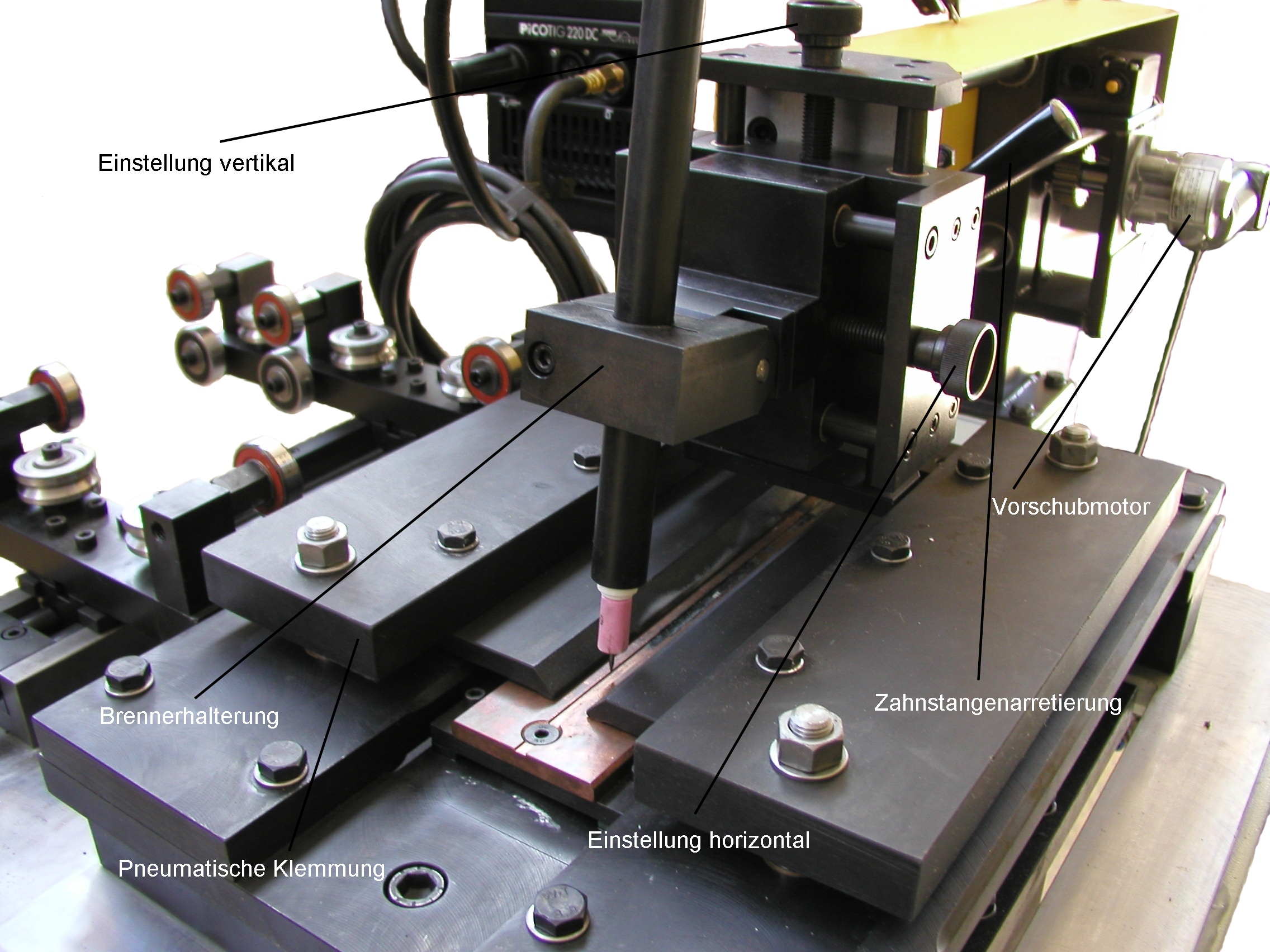 • Klemmung des Schweißverfahrschlittens manuell oder pneumatisch