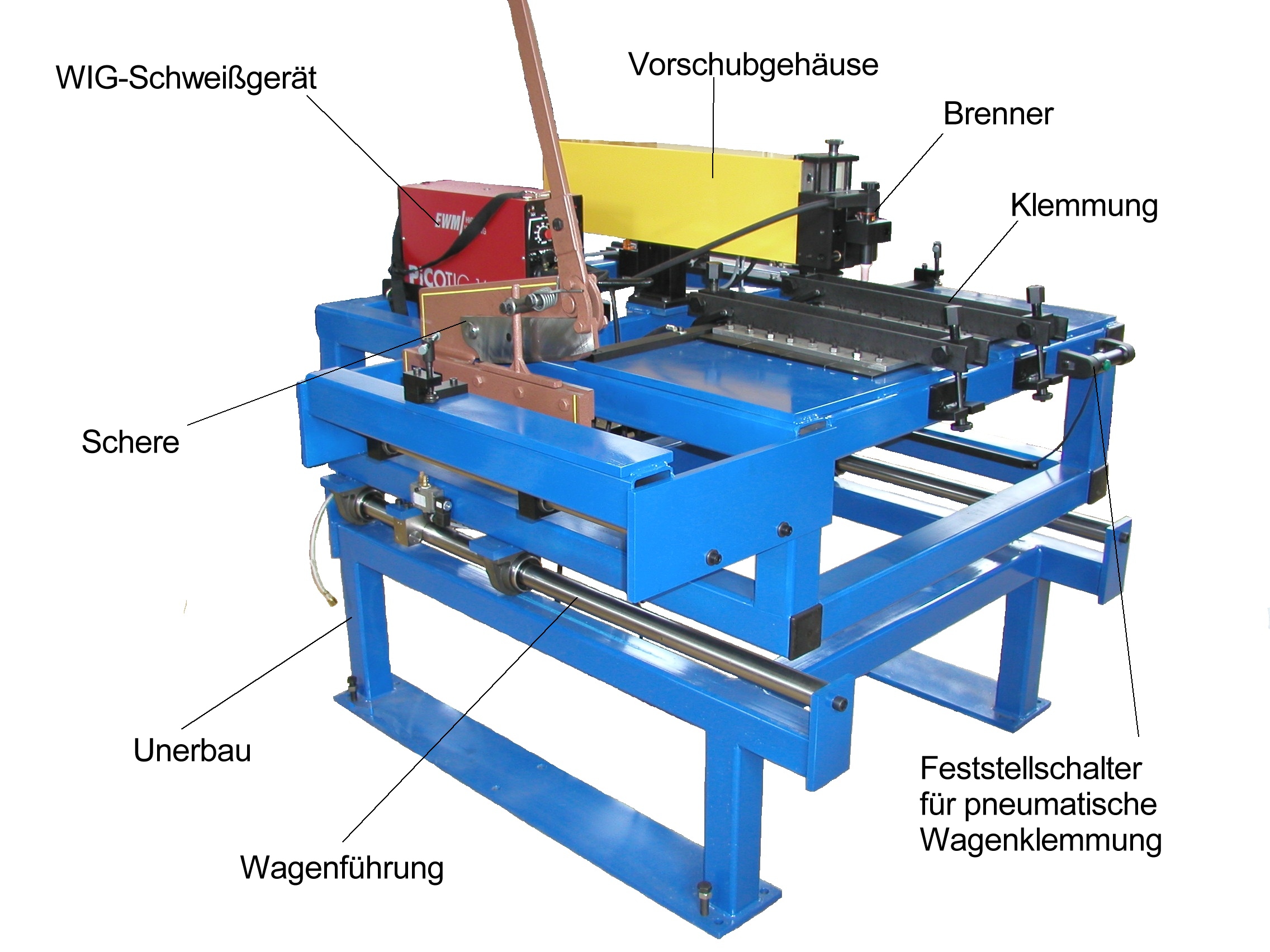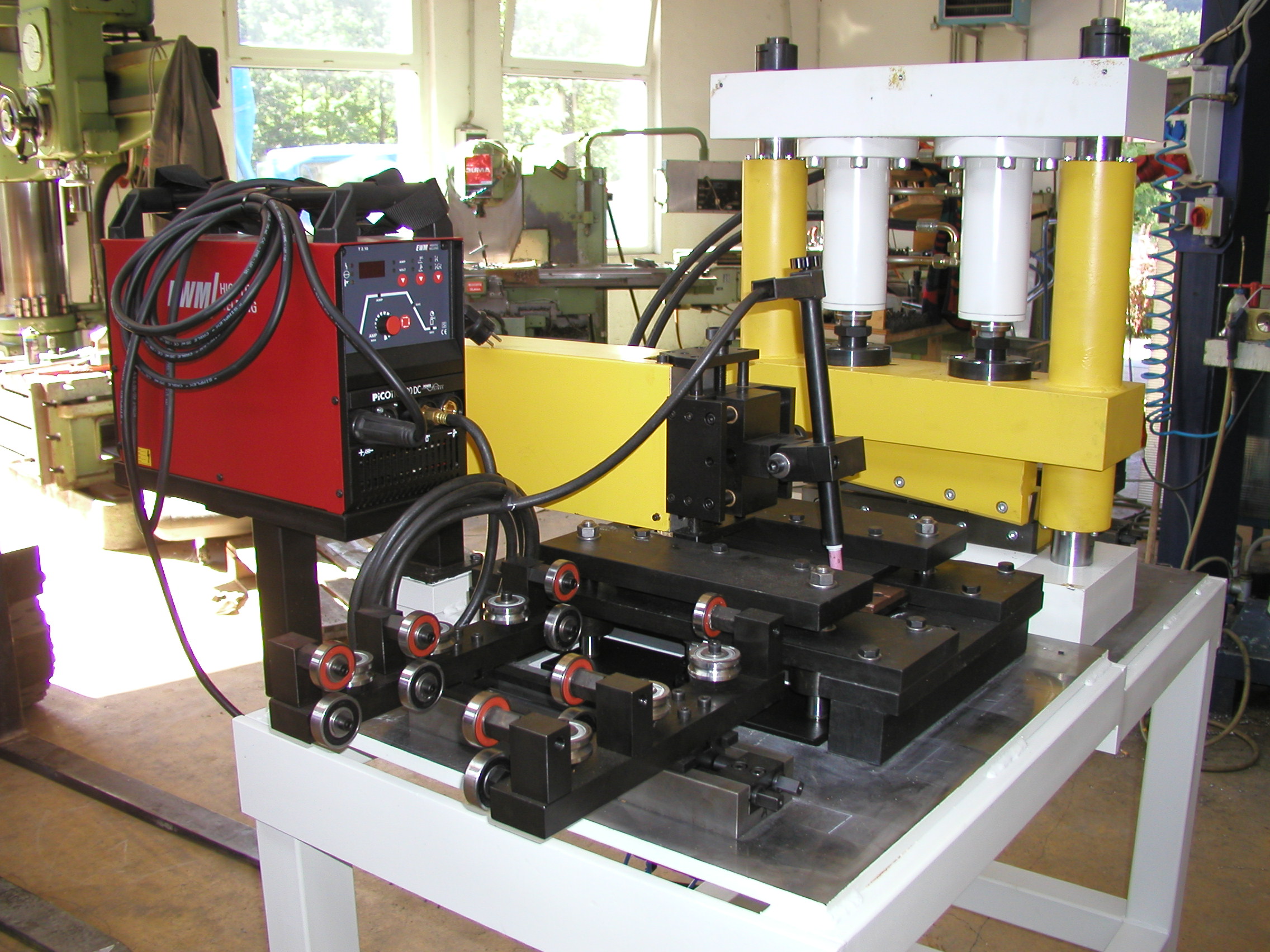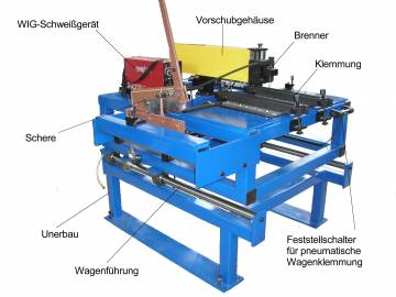zum durchschleppen des Rohbandes von der Haspel in die Profilieranlage bei „Bandende“ Bandendenschweißanlagen sind in den unterschiedlichsten Konfigurationen möglich z.B.: